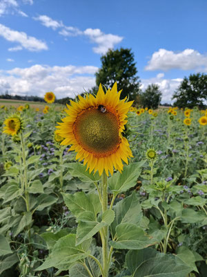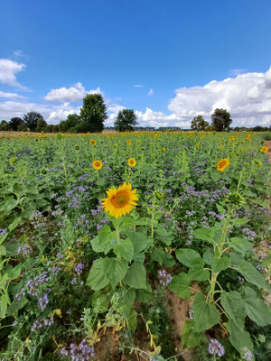 geeignete Pflanzen enthalten sind und mit der Trockenheit am besten zurecht kommen Phacelia und Sonnenblume und daher sind diese aktuell dominant. Beide sind bei Bestäubern sehr beliebt und